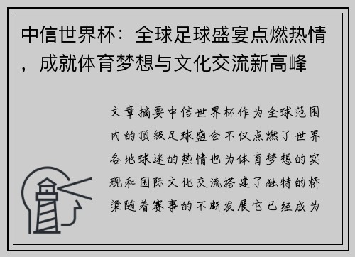 随着世界杯赛事的举行,全球球迷对其决赛门票的需求逐渐增加,世界杯决赛成为了全世界瞩目的焦点。然而,伴随着球迷的热情高涨,门票价格的波动也成为了大家关心的话题。究竟哪些因素会影响世界杯决赛门票的最终价格...